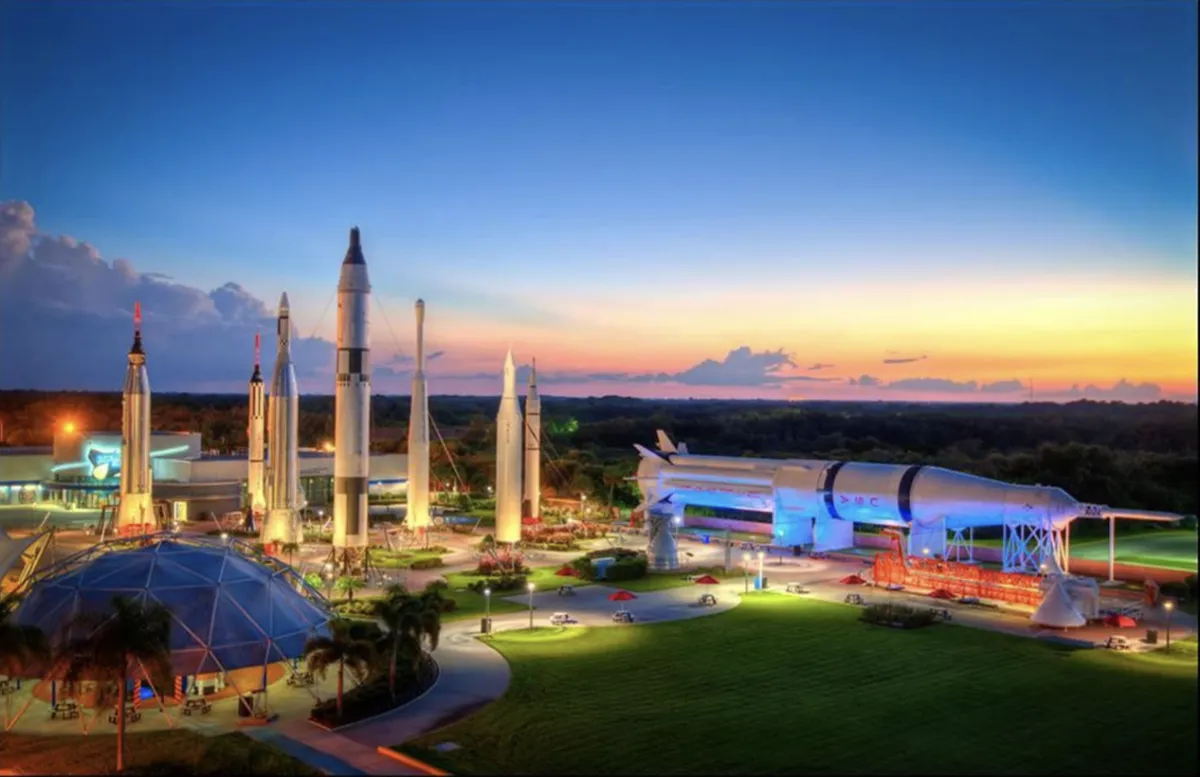 McLeod's Construction restored over 100,000 square feet of concrete surfaces across three areas of the Kennedy Space Center Visitors Complex — including the Rocket Garden, Heroes & Legends HAL Ramp, and the Vapor Trail entrance. Work ranged from standard pigmented sealer systems to a custom glow-in-the-dark stamped overlay designed in partnership with Georgia Tech, all backed by a 10-year workmanship warranty.